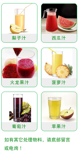 该机主要适合于各种浆果、仁果及各种蔬菜类加工。广泛适用于苹果、梨、胡萝卜、芦荟、仙人掌等取汁。能全自动完成浆果、仁果、及蔬菜类果蔬破碎、榨汁、排渣等工序。其具有结构新颖紧凑、节能高效、生产能力大、适用范围广等优点。